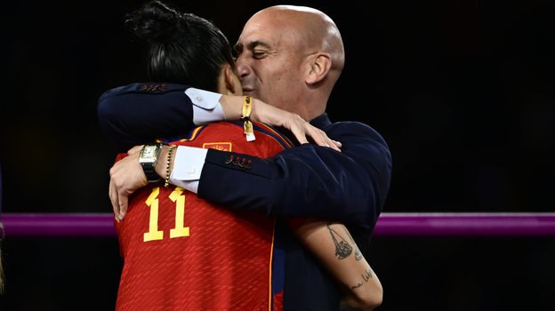 Эмэгтэйчүүдийн хөлбөмбөгийн дэлхийн аварга шалгаруулах тэмцээний шувтаргын шатанд Испанийн шигшээ баг ялалт байгуулсны дараа багийн гишүүн Женни Эрмосог тэврэн, уруул дээр нь үнссэнийхээ төлөө ихээхэн дуулианд өртсөн Испанийн Хөлбөмбөгийн холбооны Ерөнхийлөгч Луис Рубиалес албан тушаалаасаа огцрох өргөдөл өгчээ.
