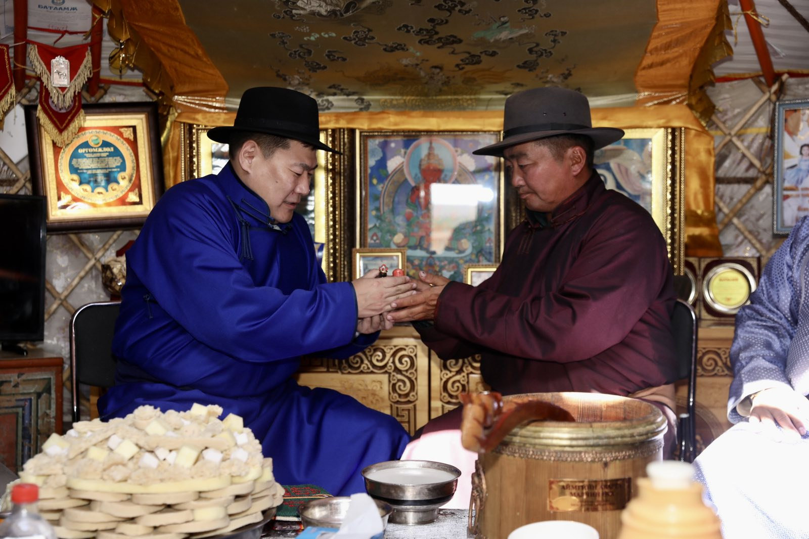Гэрийн эзэн Н.Болдбаатар “Миний өвөө 1948 онд маршал Х.Чойбалсангаас БНМАУ-ын сайн малчин цол хүртэж байсан бол өнгөрсөн жил өөрөө аймгийн аварга малчин болж, өдгөө Засгийн газрын тэргүүн гэрт минь зочилж буйд бэлгэшээж байна” гэлээ. Тэрбээр удам дамжсан малчин. 37 жил мал маллаж байна. Таван хүүхдийнх нь нэг нь малчин, хоёр нь малын эмч мэргэжилтэй ажээ. “Малын гаралтай түүхий эд, махны үнэ хямд. Арьс шир үнэгүйдчихсэн. Намар малын тарга тэвээрэг ид гүйцсэн үед махны үнэ уначихдаг. Эдгээр асуудалд анхаарвал малчдын амьжиргаа, улс орны эдийн засагт ч нэмэртэй. Цаашлаад малчид малаа эдийн засгийн эргэлтэд оруулж, бэлчээрийн даац тэнцвэржихэд ч нөлөөлнө” гэж Н.Болдбаатар ярилаа. Эхнэр Ш.Бямбарэгзэн “Сүүлийн жилүүдэд төр засгаас малчдын нийгмийн асуудалд нэлээд анхаарч байна. Малчид эрүүл мэнддээ анхаарахгүй, орхигдуулах гээд байдаг талтай. Бид гэр бүлээрээ эрт илрүүлэгт хамрагдсан” гэлээ.