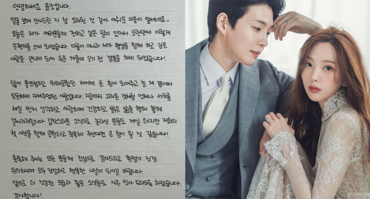 "Би та бүхэнд өөрт тохиолдол маш сайхан мэдээ хуваалцахыг хүссэн учир энэхүү захидлыг бичиж байна. Би амьдралынхаа хань болох хүнтэйгээ танилцаж, 11-р сард хуримаа хийх гэж байна. Надтай амьдралынхаа хагасыг хамт өнгөрүүлсэн шүтэн бишрэгчиддээ би гэрлэх гэж байгаа гэдгээ хэлэхэд тун таатай байна. Намайг хайрлаж, намайг байгаагаар минь дэмжиж байгаад баярлалаа гэж хэлмээр байна. Би илүү төлөвшсөн, илүү сайн жүжигчин болж та бүхний итгэлийг алдахгүй гэдгээ амлаж байна" гэсэн байв.