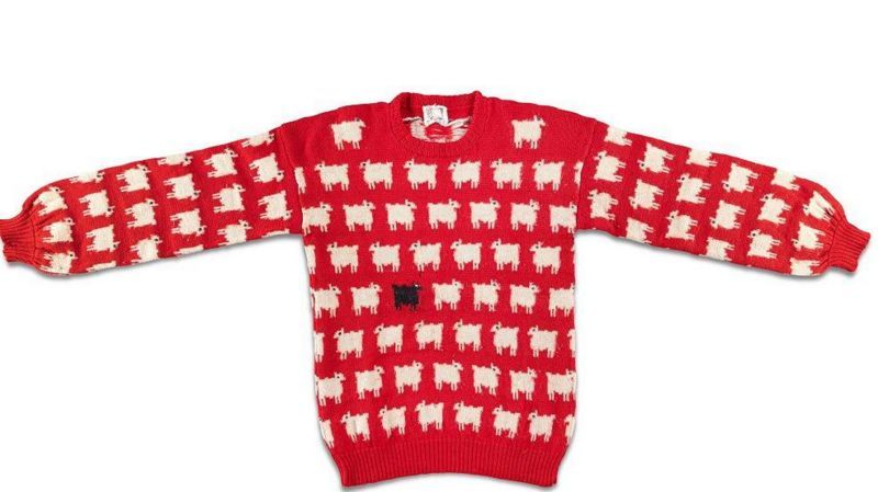 Олон цагаан хонин дунд ганцхан хар хонь дүрслэгдсэн улаан цамцыг Диана Спенсер Чарльзын сүйт бүсгүй байхдаа, 1981 онд өмсөж байжээ. Энэ оны гуравдугаар сард Дианагийн цамцыг дээврийн хонгилоос олж, дуудлагаар худалдахаар болсон байна.