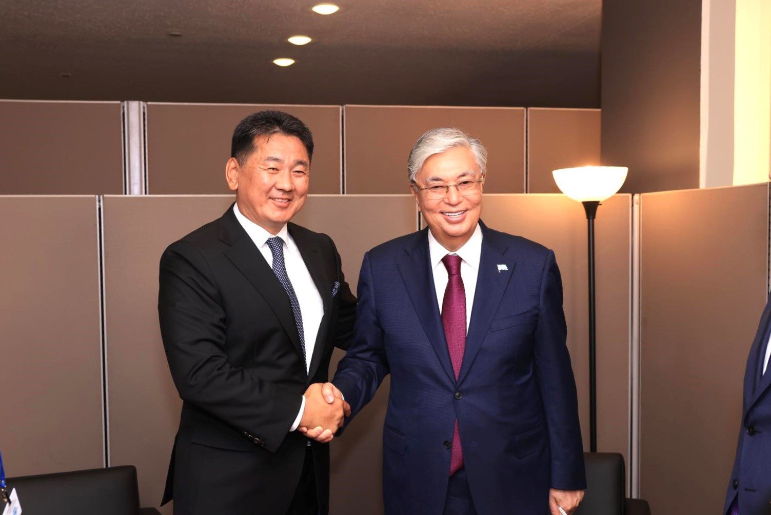 АНУ-ын Нью-Йорк хотноо НҮБ-ын Ерөнхий Ассамблейн 78 дугаар чуулганд оролцож буй Монгол Улсын Ерөнхийлөгч Ухнаагийн Хүрэлсүх 2023 оны 09 дүгээр сарын 19-ний өдөр Бүгд Найрамдах Казахстан Улсын Ерөнхийлөгч Касым-Жомарт Токаевыг өөрийнх нь хүсэлтээр хүлээн авч уулзав.