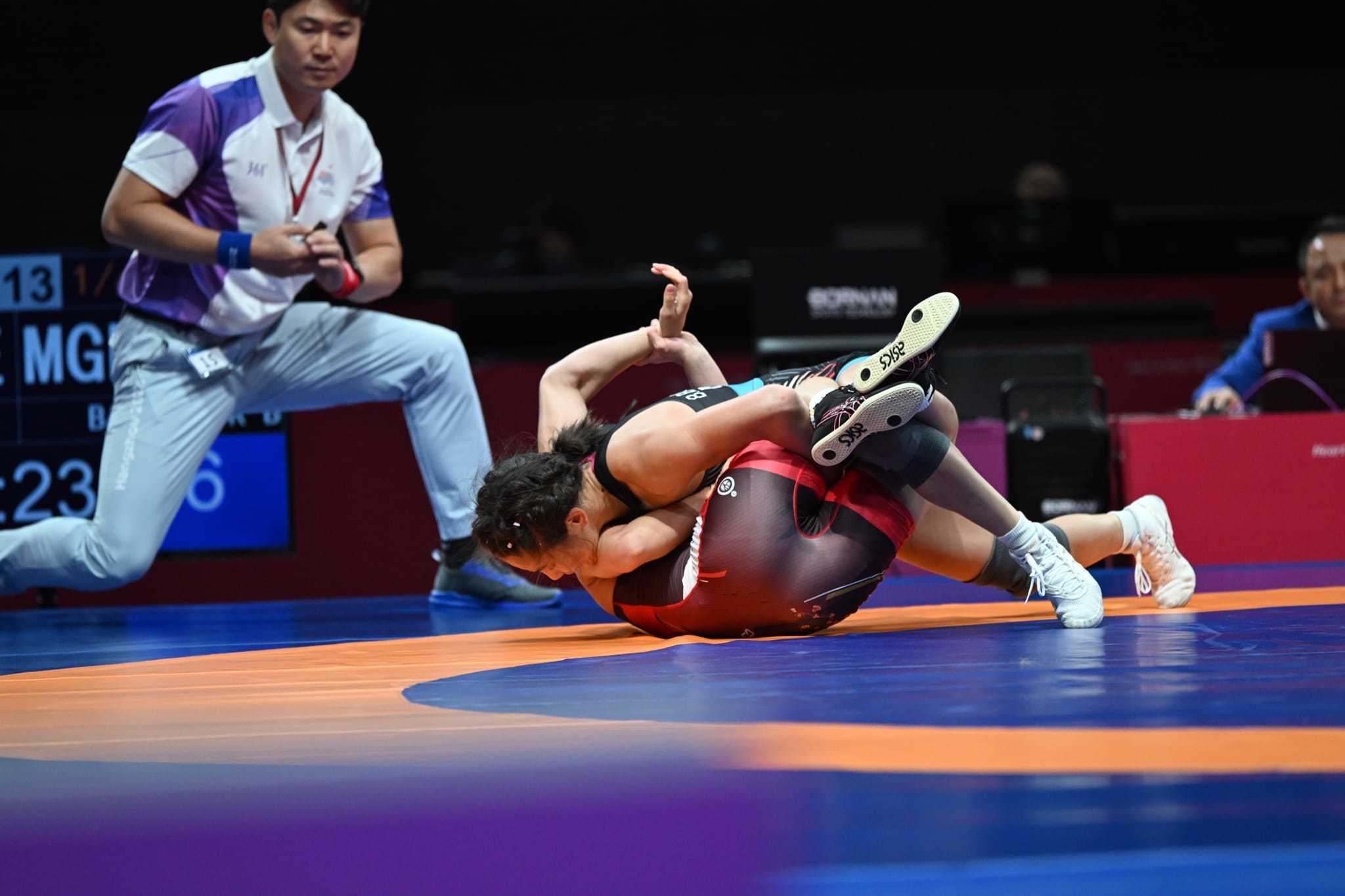 Ханжоу-2022 Азийн наадмын Эмэгтэйчүүдийн 53 кгд өрсөлдсөн Олимп, дэлхийн хүрэл медальт, үндэсний шигшээ багийн тамирчин Б.Болортуяа зооны аваргын төлөө Японы Акари Фүжинамид ялагдсан.