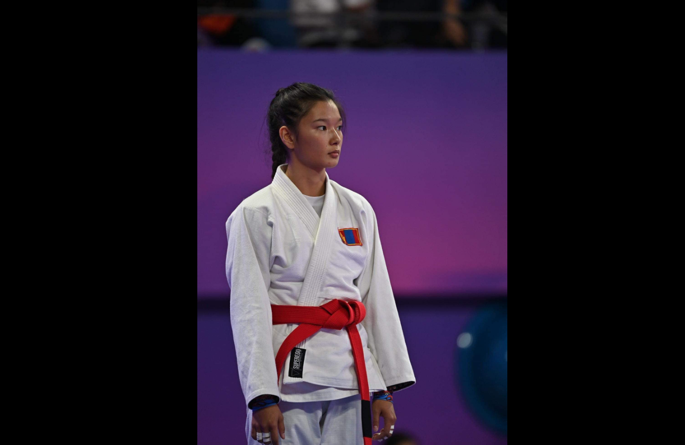 Ханжоу-2022 Азийн Наадмын жюү жицүгийн эмэгтэйчүүдийн -48 кг-ын жинд Төмөрөөгийн Уянга хүрэл медалийн төлөө Тайландын Тан Дечрада Кейситэй барилдана.