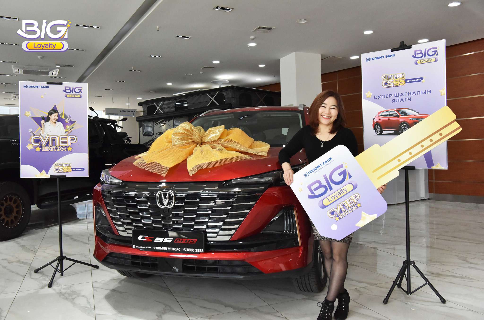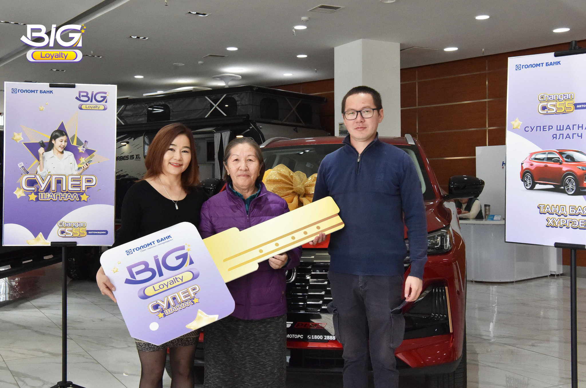 Голомт банкнаас харилцагчдынхаа тогтмол хэрэглээг урамшуулах зорилгоор 2 дахь жилдээ амжилттай хэрэгжүүлж буй Big Loyаlty оноотой хөтөлбөрийн супер шагнал Changan CS55 автомашины эзэн шагналаа гардан авлаа. Big Loyalty оноотой хөтөлбөрийн хүрээнд банкны бүтээгдэхүүн, үйлчилгээг авах бүрдээ оноо цуглуулж, цуглуулсан оноогоо ашиглан төрөл бүрийн хөнгөлөлт, урамшуулалд хамрагдах боломжийг Голомт банк харилцагчдадаа олгож буй бөгөөд хамтран ажиллаж буй байгууллагуудын купон авах эсвэл автомашин болон 1 өрөө орон сууцны шагналтай урамшуулалд оролцох гэсэн 2 хэлбэрээр оноогоо зарцуулах боломжтой.