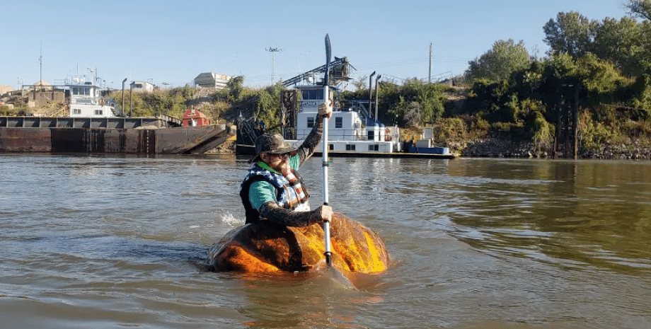 Эх сурвалжийн мэдээлснээр, Стив Куэни асар том хулуу ургуулсан бөгөөд үүгээрээ завь хийж, Huckle Berry гэж нэрлэн, "хулуун завь"-иараа Канзас-Ситигээс Наполеон хүртэл 11 цаг сэлжээ. Түүнийг ийн аялах хугацаанд Paddle KC Padding Club завьчдын клубийн 10 гаруй завь дагалдан явсан байна. Завьчид түүнд дэмжлэг үзүүлж, аяллыг баримтжуулахад нь тусалжээ.