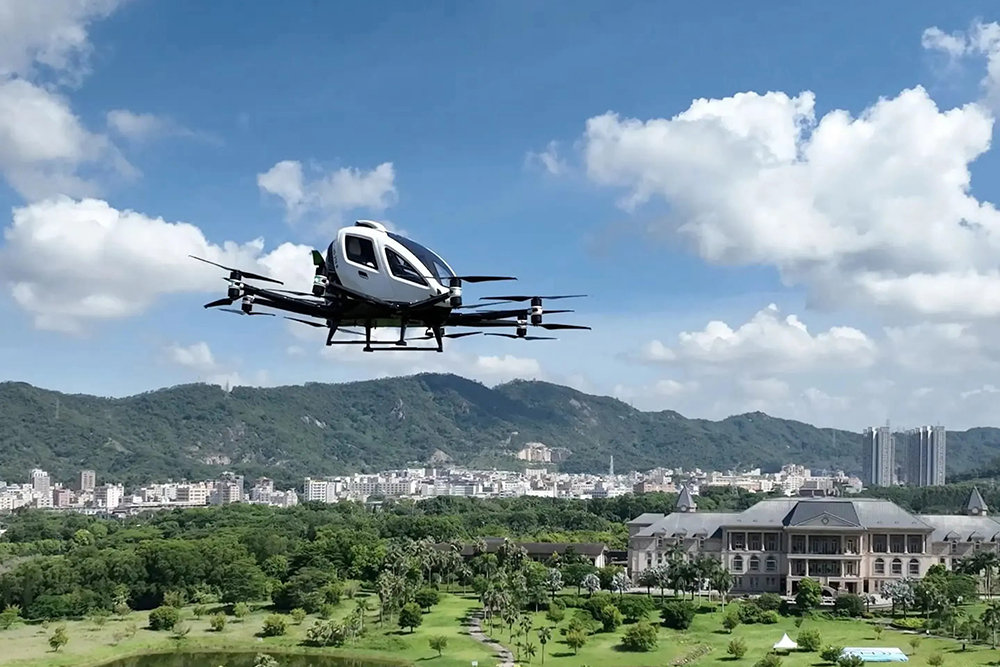 2016 оноос боловсруулж эхэлсэн нисэгчгүй нисэх аппаратыг долоон жилийн дараа ашиглалтад оруулжээ. Агаарын такси нь нэмэлт цэнэггүйгээр 30 км хүртэлх зайд хоёр зорчигчийг тээвэрлэх чадвартай, дээд хурд нь 130 км/цаг аж. Энэ нь Америкийн энэ төрлийн агаарын таксины үзүүлэлттэй харьцуулахад тийм ч өндөр биш ч гэлээ гагцхүү Хятадад энэ агаарын тээвэрт зөвшөөрөл олгож эхэлсэн гэдгээрээ анхдагч болж байгаа юм. АНУ болон Европт энэ төрлийн технологид зөвшөөрөл олгох ажлыг 2024 оноос эхлүүлэхээр төлөвлөж байгаа аж.