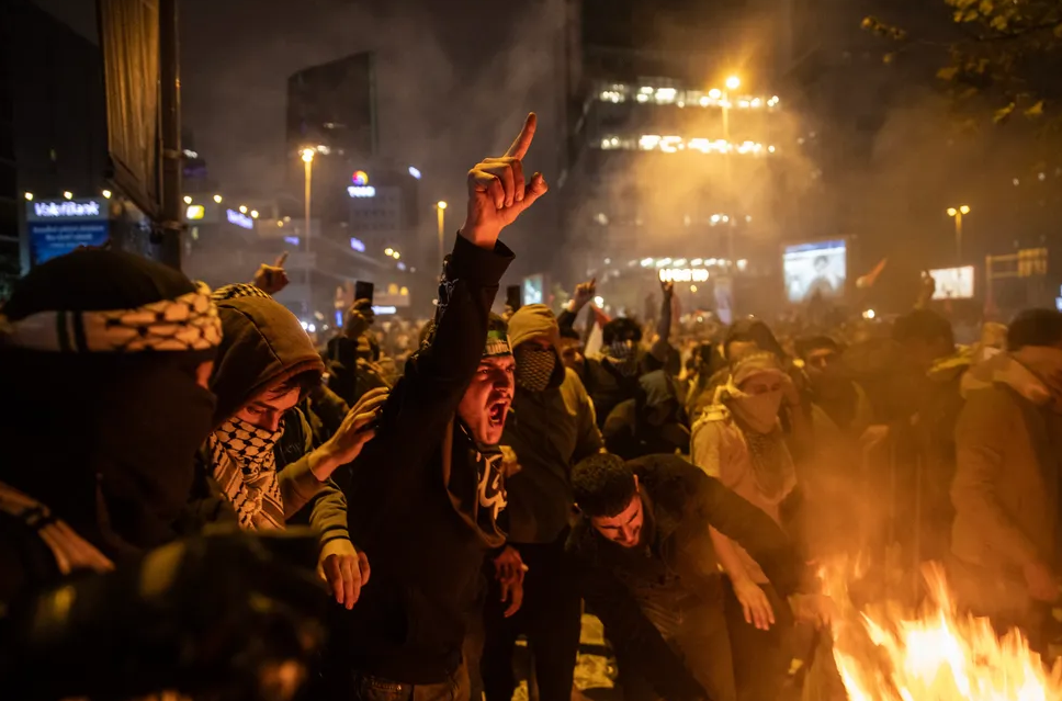 Израилын консулын газар руу салют шидэж, зарим жагсагч дипломат төлөөлөгчийн газрын нутаг руу нэвтрэхийг завджээ. Улмаар Туркийн цагдаагийнхан жагсагчдын эсрэг усан буу, нулимс асгаруулагч хий ашигласан байна.