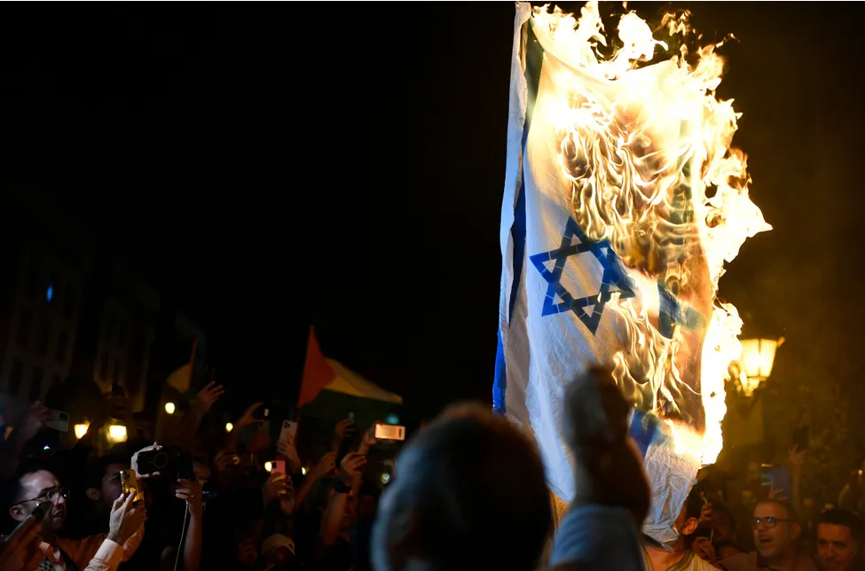 Мароккогийн нийслэл Рабатад парламентын ойролцоох талбай дээр эсэргүүцлийн жагсаал болж, энэ үеэр жагсагчид Израилын далбааг шатаажээ.