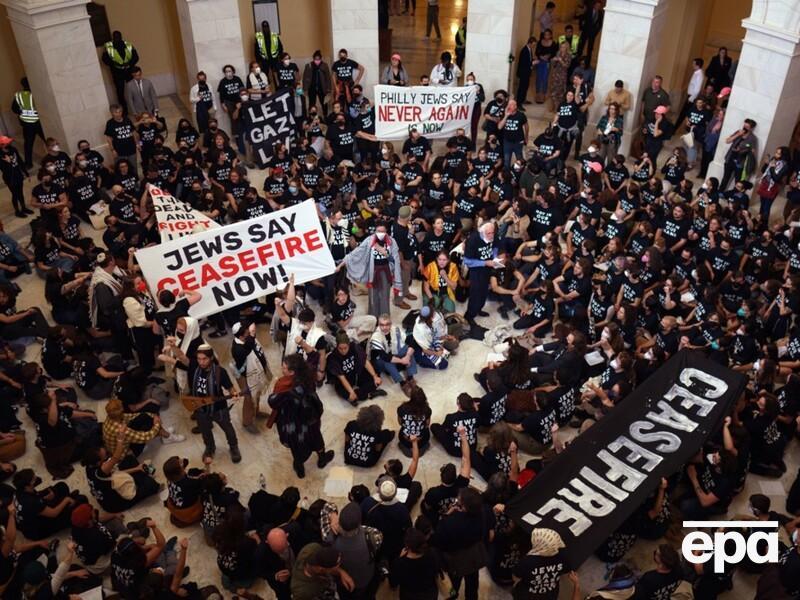 NBC сувгийн мэдээлснээр, 10 дугаар сарын 18-ны үдэш АНУ-ын нийслэл Вашингтон хотноо Конгрессын байрны гадаа Палестиныг дэмжигчид цуглан, эсэргүүцэл илэрхийлжээ. Энэ үеэр 100 хүн баривчлагдсан байна. Тэдний ихэнхийг цагдаагийн гурван автобусанд гавлан суулгаж авч явжээ.