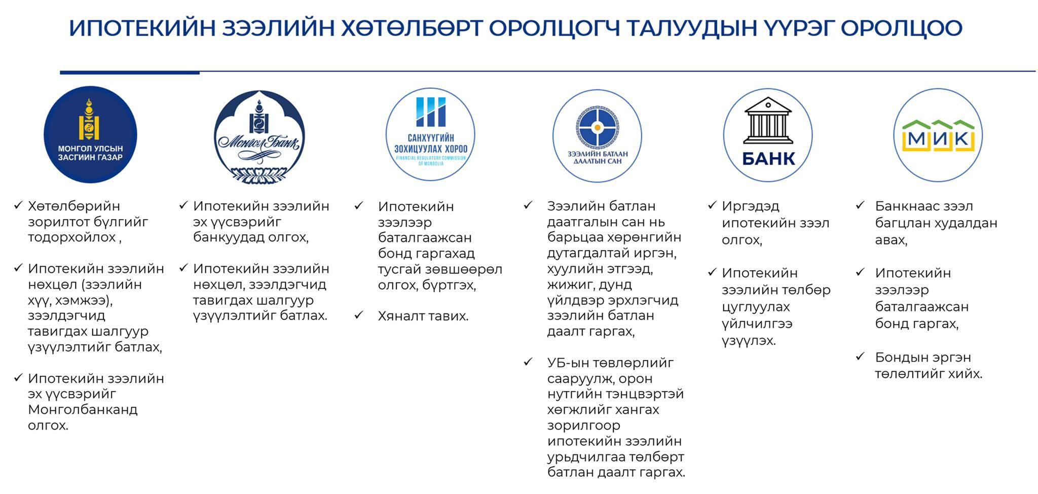 Иргэдийг орон сууцжуулах, орлогод нийцсэн орон сууцны зээлийн хүртээмжийг нэмэгдүүлэх зорилтын хүрээнд 2013 оноос эхлэн Монгол Улсын Засгийн газраас хөнгөлөлттэй хүүтэй орон сууцны ипотекийн зээлийн хөтөлбөрийг хэрэгжүүлж эхэлсэн. Сүүлийн 10 гаруй жилийн хугацаанд манай улсад орон сууцны санхүүжилтийн тогтолцоог үр өгөөжтэй хэрэгжүүлэхэд төр-хувийн хэвшлийн түншлэлийн сайн жишгийг бий болгож амжилттай нутагшуулаад байна.
