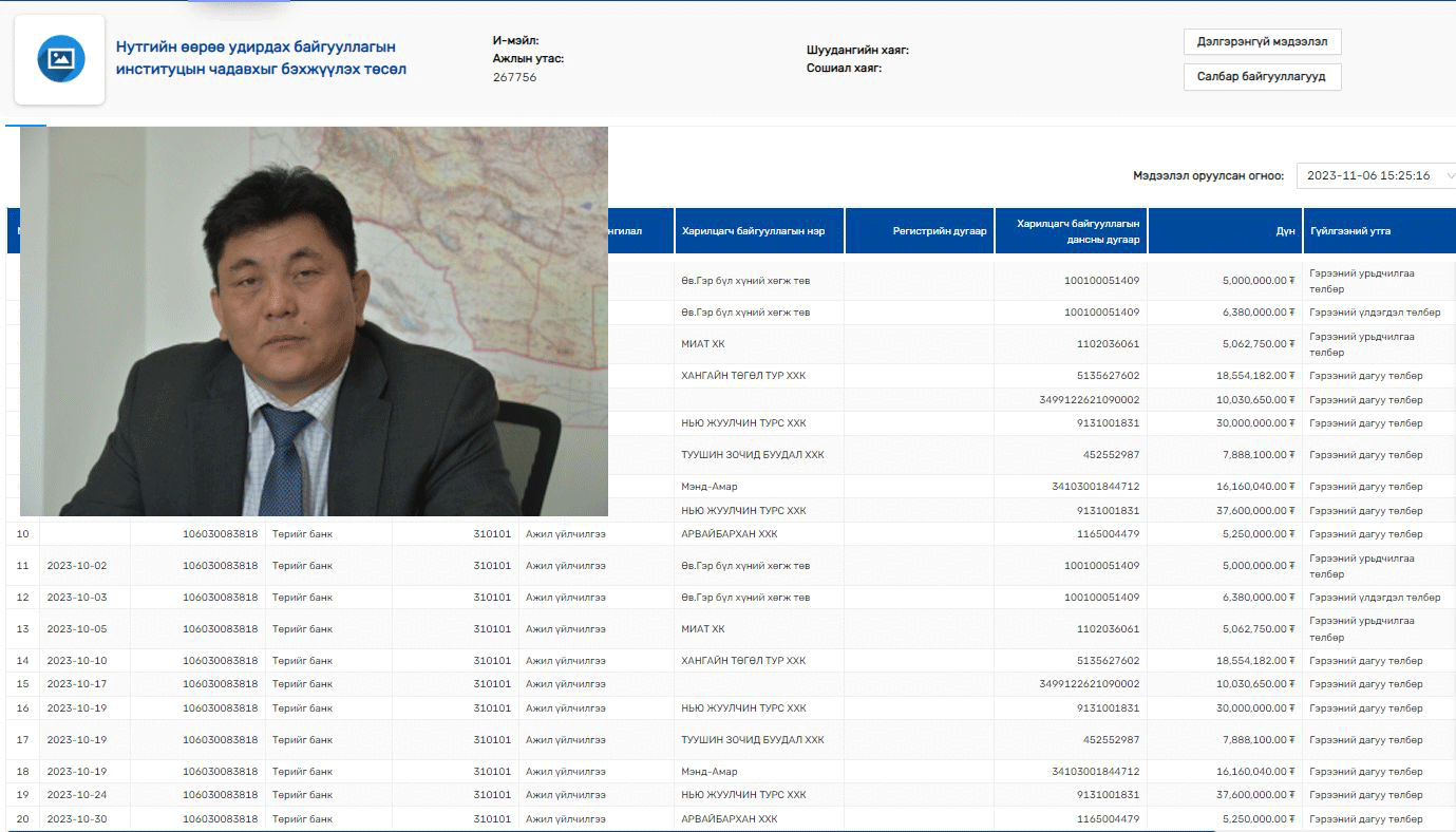 Энэ төслийн үндсэн зорилго бол “Монгол Улсын засаг захиргаа, нутаг дэвсгэрийн нэгж, түүний удирдлагын хууль”, “Малын тоо, толгойн албан татварын тухай хууль” зэрэг хуулиудын хэрэгжилтийг дэмжиж ажиллах, орон нутгийн бэлчээрийн менежмент, орон нутгийн Иргэдийн төлөөлөгчдийн хурлын төсөв санхүү, хяналт, шинжилгээ болон орон нутгийн бусад үйл ажиллагаа, бүтэц зохион байгуулалт зэргийг сайжруулахад чиглэн ажиллаж байгаа юм. Тэгвэл ЗГХЭГ-ын харъяа Нутгийн өөрөө удирдах байгууллагын институцын чадавхыг бэхжүүлэх төслийн ШИЛЭН ДАНСНЫ мэдээлэлд хэд хэдэн анхаарал татсан гүйлгээ гарсан байна.