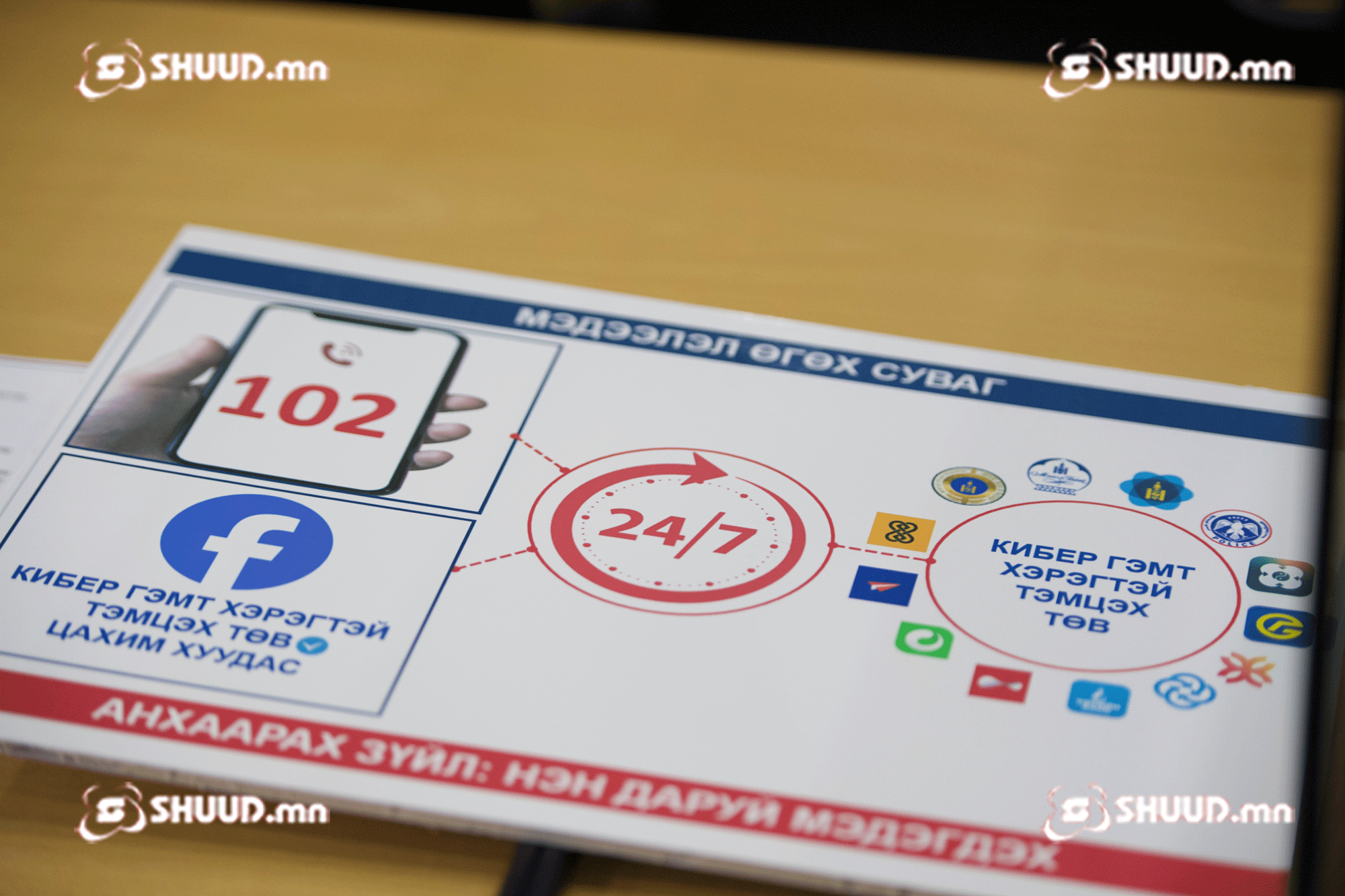 Цагдаагийн байгууллагад Прокурорын байгууллага, арилжааны банк, үүрэн телефоны үйлчилгээ үзүүлэгч нараар бүрдсэн Кибер гэмт хэрэгтэй тэмцэх төв нээгдэж, 102 тусгай дугаарын утсаар болон фейсбүүкийн Кибер гэмт хэрэгтэй тэмцэх төв пэйж хуудсаар дуудлага, мэдээлэл хүлээн авч ажиллаж эхэллээ.