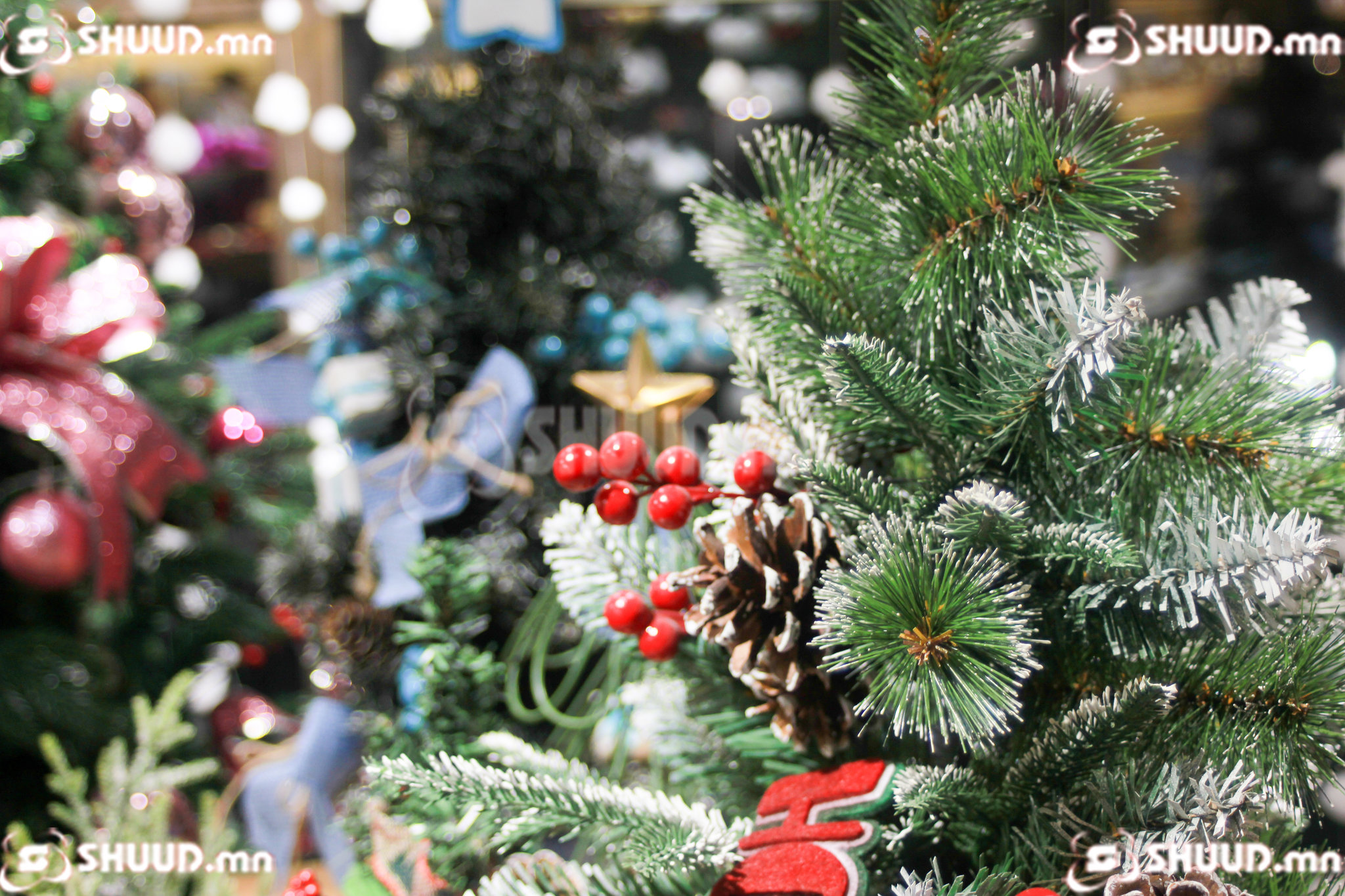 Алтжин худалдааны төвийн нэг давхарт гацуур мод хийгээд дагалдах чимэглэл зарж байх аж. Гацуур модны сонголт бага байсан бөгөөд тойрог, өндөр чимэглэлээсээ шалтгаалж үнэ харилцан адилгүй байх аж. Дундаж үнийг нь танилцуулбал,