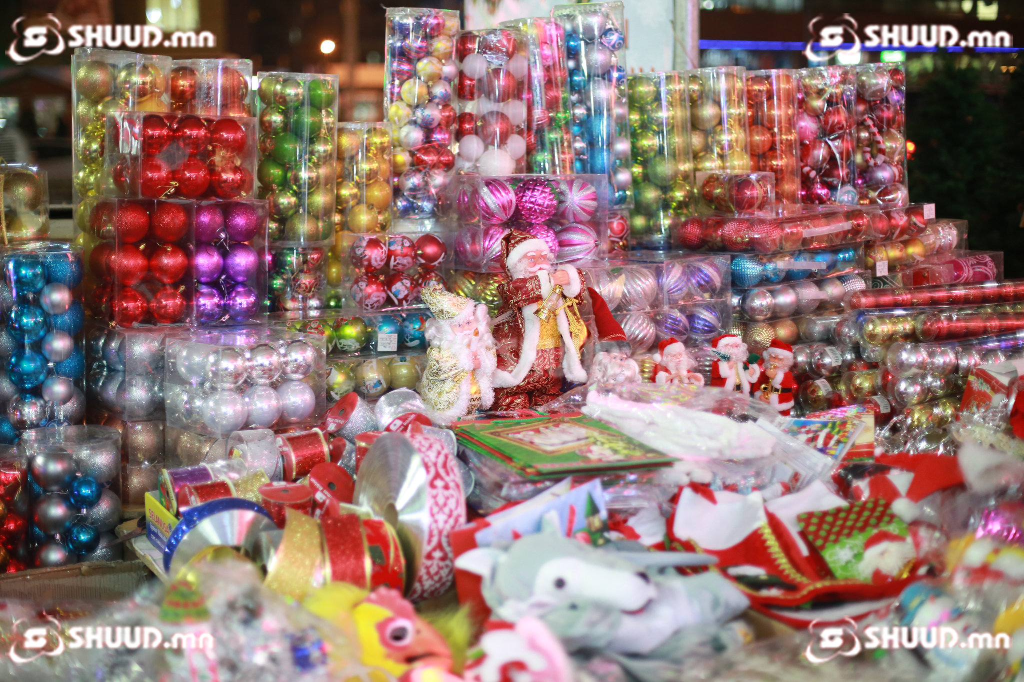 Шинэ жилийн чимэглэл худалдаалж буй иргэн: