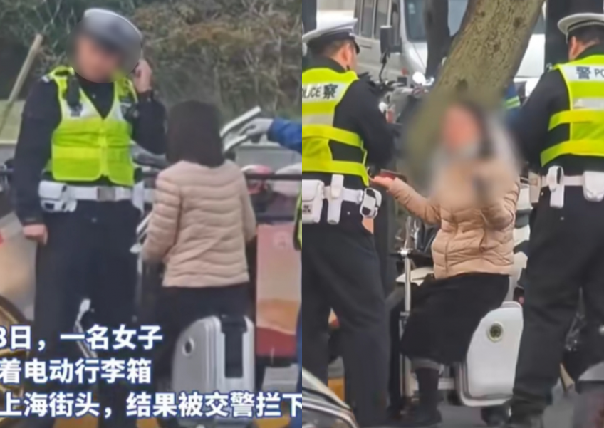 Шанхай хотын оршин суугч эмэгтэй өөрөө явдаг цахилгаан чемоданаар замын хөдөлгөөнд оролцож яваад саатуулагджээ. Энэ талаарх мэдээллийг AsiaOneсайт дамжуулсан байна.