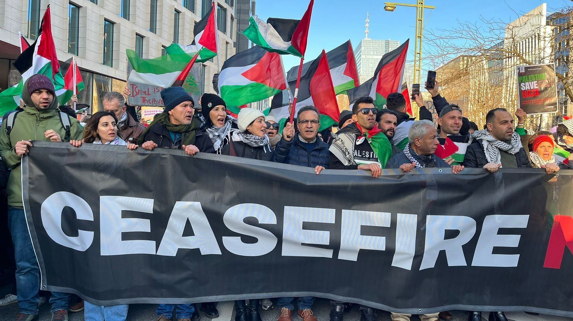 ХАМАС, Израилын хоорондын дайн эхэлснээс хойш Газын зурваст олон мянган энгийн иргэн амиа алдаж байгааг эсэргүүцсэн жагсаал дэлхийн олон хотод болж байлаа. Энэ удаад Бельгийн нийслэл Брюссель хотод ням гарагт Газын зурвас дахь палестинчуудыг дэмжсэн жагсаал болжээ. Бельгийн RTBF сувгийн мэдээлснээр, Газын зурваст гал зогсоохыг шаардсан жагсаалд 27 мянга гаруй хүн оролцсон байна.
