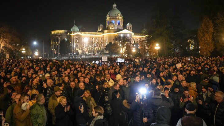 Улмаар Белград хотын парламент, хотын захиргааны барилгын өмнө дэмжигчдээ цуглуулж, эсэргүүцлийн жагсаал зохион байгуулж, дараа нь хэдэн мянган иргэн төв гудамжаар явж, замын хөдөлгөөн хаажээ.