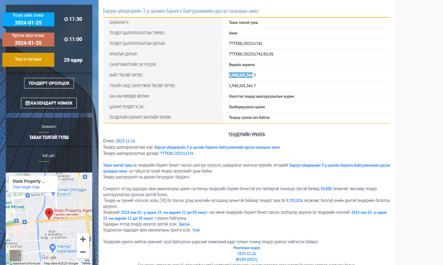 -Хоёрдугаар цехийн 150м х 50м хэмжээтэй үйлдвэрийн барилгын дээвэр шинэчлэн солих ажил хийж гүйцэтгэх гэнэ.
