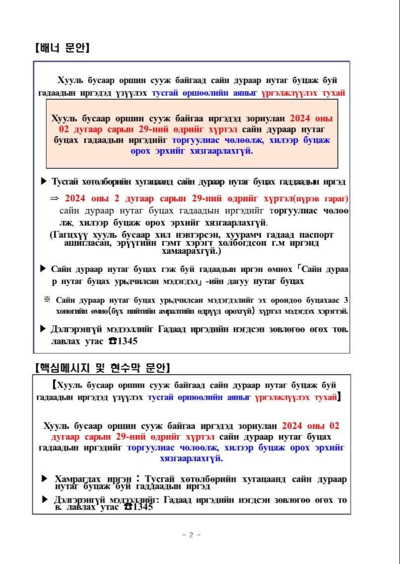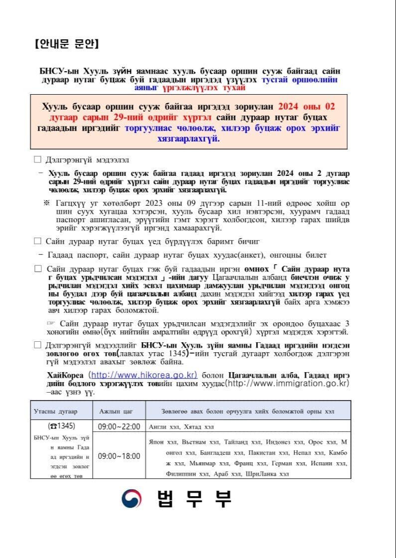 БНСУ-ын Хууль зүйн яамнаас тус улсад "харласан" гадаадын иргэдэд үзүүлэх өршөөлөө 2024 оны 02 дугаар сарын 29-ны өдрийг хүртэл үргэлжүүлэхээр болжээ. Ингэхдээ сайн дураараа нутаг буцах иргэдийг торгуулиас чөлөөлж, буцаж ирэх эрхийг нь хязгаарлахгүй юм байна.