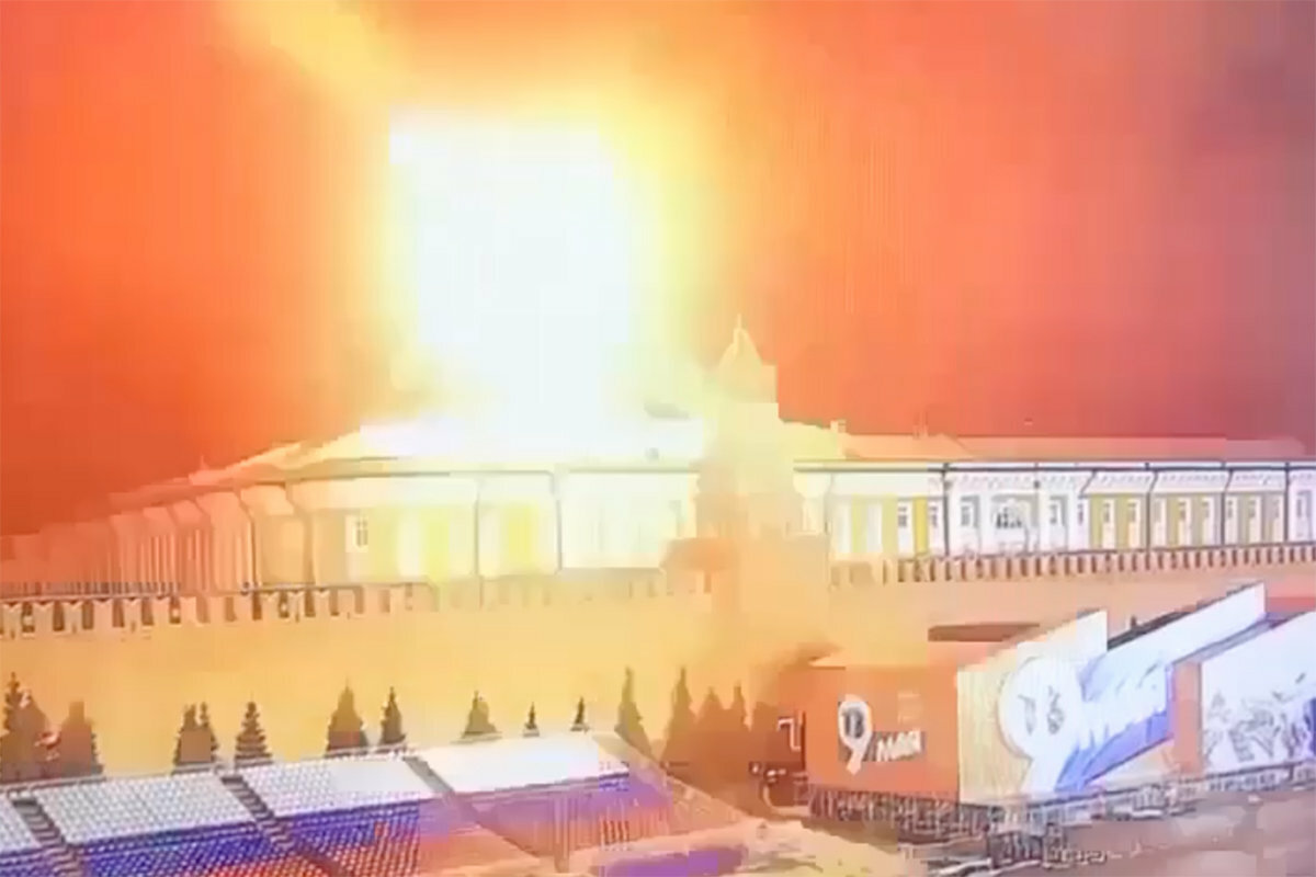 2023 оны тавдугаар сарын гурванд шилжих шөнө Оросын нийслэл Москва хотын Кремль рүү хоёр дрон довтолсон үйл явдал болсон юм. Эхний дрон Кремлийн өмнөд зүгээс нисэн ирж, Сенатын ордны орой дээр дэлбэрчээ. Хоёр дахь дрон мөн л энэ хэсэгт, эхний дрон дэлбэрснээс 16 минутын дараа буюу 02.43 минутанд дэлбэрсэн байна. Энэ үйл явдлын дараа Кремль албан ёсны хэвлэлийн мэдээндээ бүх дроныг устгасан, өөрөөр хэлбэл Оросын агаараас эсэргүүцэн хамгаалах системээр устгасан гэж онцолжээ.