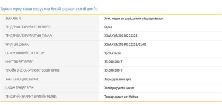 Хүнс, хөдөө аж ахуй, хөнгөн үйлдвэрийн яамнаас гурван тендер зарласан байна. Энэ нь сар шинийн баяраар аварга малчин, тариаланчдад өгөх бэлэг юм.