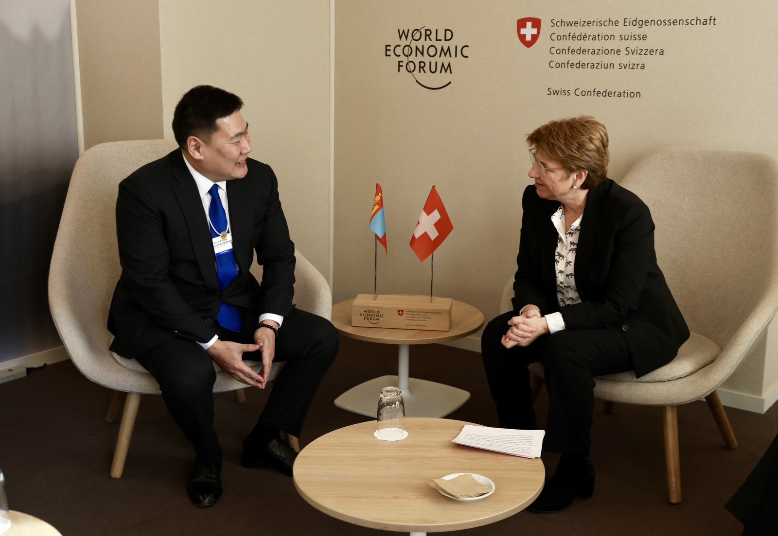 Монгол Улсын Ерөнхий сайд Л.Оюун-Эрдэнэ Швейцарын Давос хотноо зохион байгуулагдаж буй Дэлхийн эдийн засгийн чуулганд оролцох үеэрээ Швейцарын Холбооны Улсын Холбооны Ерөнхийлөгч хатагтай Виола Патришиа Амхердтай нэгдүгээр сарын 16-нд уулзлаа.