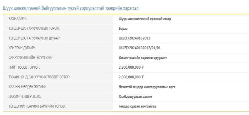 Шүүх шинжилгээний ерөнхий газраас Шүүх шинжилгээний байгууллагын тусгай зориулалттай тээврийн хэрэгсэл авах тендер зарласан байна.