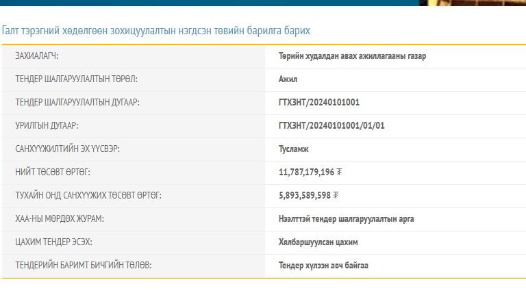 Төрийн худалдан авах ажиллагааны газраас Галт тэрэгний хөдөлгөөн зохицуулалтын нэгдсэн төвийн барилга барихаар тендер зарласан байна.