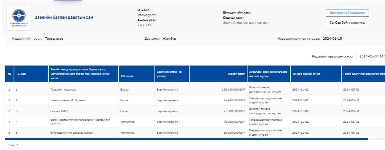 С.Цогтсайхан даргатай Зээлийн батлан даалтын сангийн хувьд 2024 оны төсвийн жилд таван худалдан авалт хийхээр төлөвлөсөн байна. Үүний хамгийн өндөр дүнтэй нь машин худалдан авах байгаа юм. Мөн 26 сая төгрөгөөр нэг ширхэг лазер принтер, 97 сая төгрөгөөр шатахуун авахаар төлөвлөжээ. Мөн телевизийн нэвтрүүлэг бэлтгэхэд 48 сая төгрөг, бүтээгдэхүүний брошур хэвлэхэд 60 сая төгрөг зарцуулах юм.