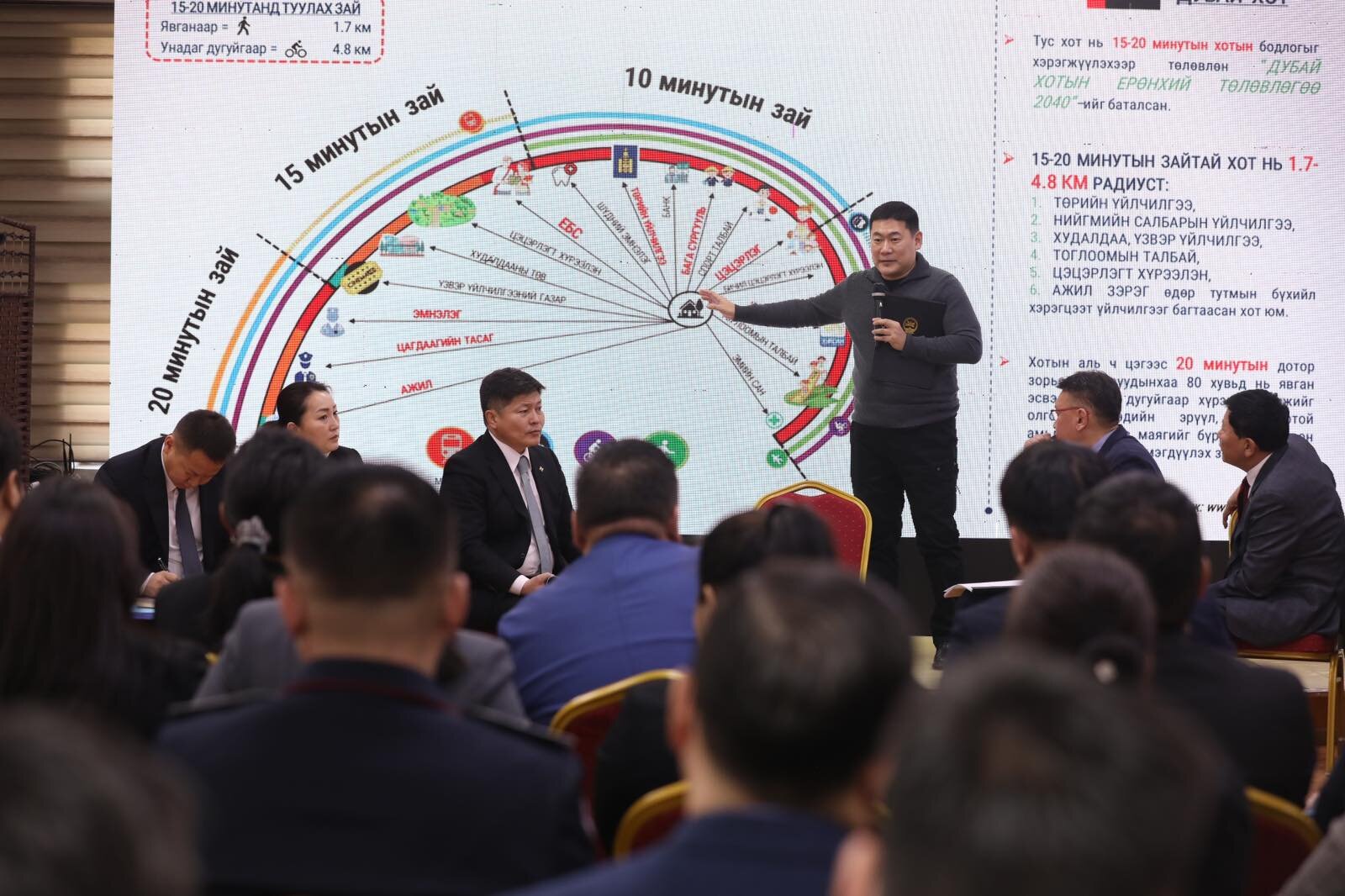 Монгол Улсын Ерөнхий сайд Л.Оюун-Эрдэнэ цаашид есөн дүүргийн гэр хороололд ажиллаж, утаа, нийтийн тээврийн хүрэлцээ, авто зам, хогны тээвэр, гэмт хэргийн гаралт, эрүүл мэнд, боловсролын үйлчилгээ, орон сууцжуулалт, дэд бүтэц, хөрөнгө оруулалт зэрэг нийслэлчүүдэд тулгамддаг асуудал бүрийг шийдэх зорилготой нийслэлийг бүсчилж хөгжүүлэх төлөвлөлтийг Засгийн газар боловсруулна. Ингэснээр төрийн үйлчилгээг хүндээ ойртуулах байдлаар буюу заавал хотын төв рүү орохгүйгээр 15-20 минутад хүссэн үйлчилгээгээ авдаг болгох, тухайн бүсийг цогцоор нь хөгжүүлэх төлөвлөлтөд иргэдийн саналд тулгуурласан бодит шийдлийг тусгах нь уулзалтын гол зорилго юм.