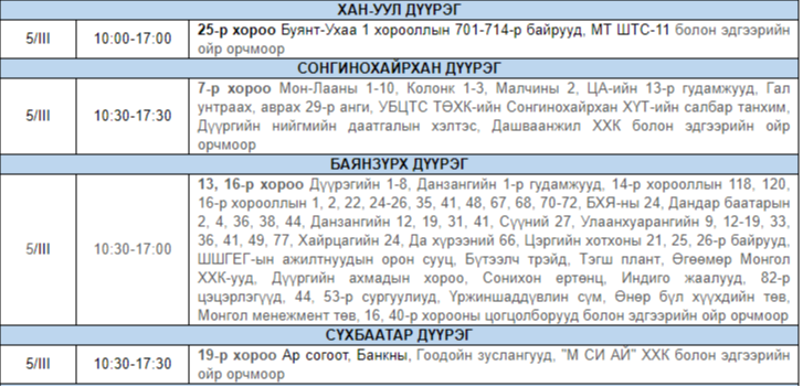 Цахилгааны шугам сүлжээ, тоноглолд засвар үйлчилгээ хийх хуваарийн дагуу өнөөдөр дөрвөн дүүргийн тодорхой байршлуудад цахилгаан хязгаарлана.