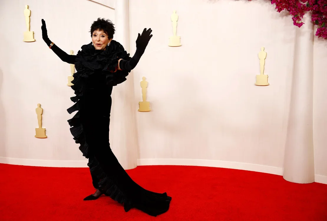 92 настай жүжигчин Рита Морено загвар зохион бүтээгч Badgley Mischka-ийн хар өнгийн даашинз, дэгжин бээлийгээр гоёжээ.