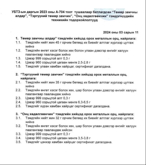 Өөрийн хөрөнгөөр хийгдэнэ хэмээн тодотгосон энэхүү худалдан авалтад 400 сая төгрөг зарцуулах юм. Ингэхдээ 900 ширхэг Төмөр замчны алдар, 860 ширхэг Тэргүүний төмөр замчин, 500 ширхэг Онц хөдөлгөөнчин тэмдэг худалдан авахаар төлөвлөжээ. Х.Хэрлэн даргатай Улаанбаатар төмөр замынхан өнөө жил 75 жилийн ойгоо тэмдэглэхээр төлөвлөж ийнхүү ажлуудаа эхлүүлжээ.