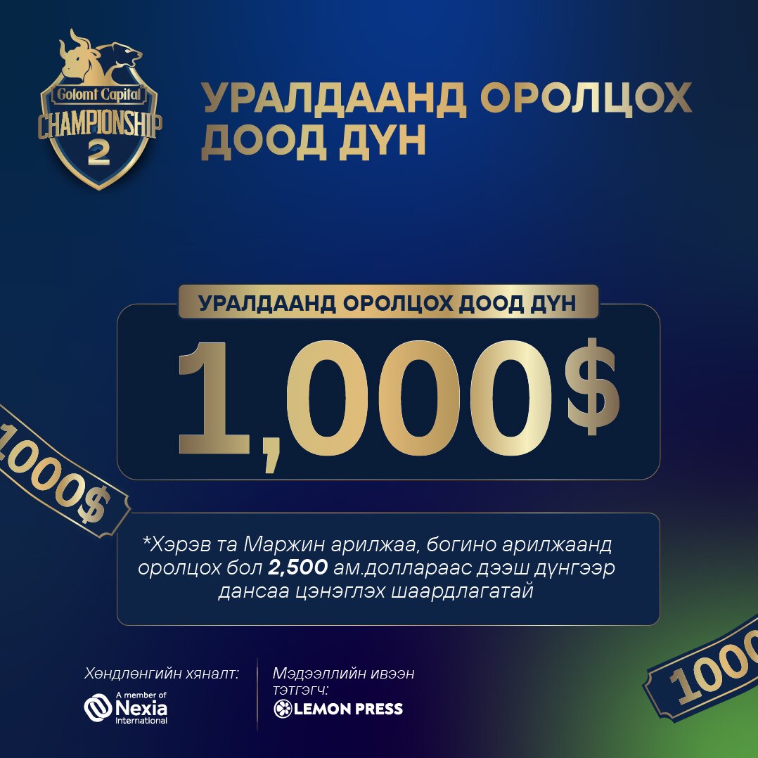 ”GОLOMT CAPITAL CHAMPIONSHIP-2” ГАДААД АРИЛЖААНЫ УРАЛДААНЫ БҮРТГЭЛ ЭХЭЛЛЭЭ