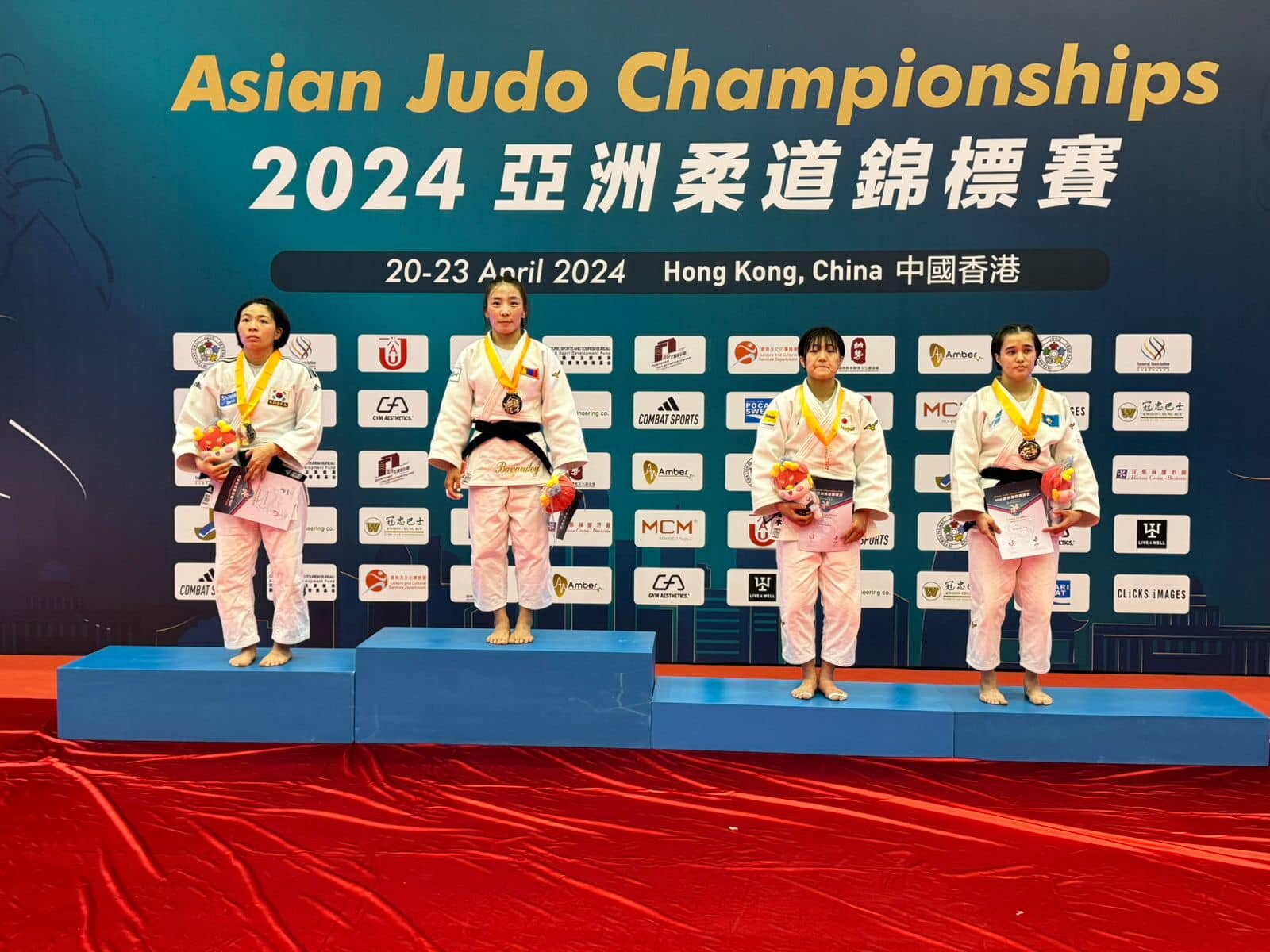 Мөн эмэгтэйчүүдийн 52 кг-ын жинд АНЭУ-ын нэр дээр барилдсан ОУХМ Б.Хорлоодой Азийн аваргын алтан медалын төлөө Япон Улсын тамирчинтай барилдсан. Японы тамирчин мэх хийхдээ толгойгоороо татамид зоогдож унасан учир торгууль авч, ОУХМ Б.Хорлоодой Ази тивийн аварга болжээ. Харин Ази тивийн дэд аваргаар Б.Ганхайч, хүрэл медалийг Л.Сосорбарам, Б.Ням-Эрдэнэ нар хүртжээ. Тэмцээн өнөөдөр үргэлжилнэ.