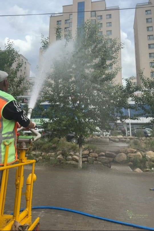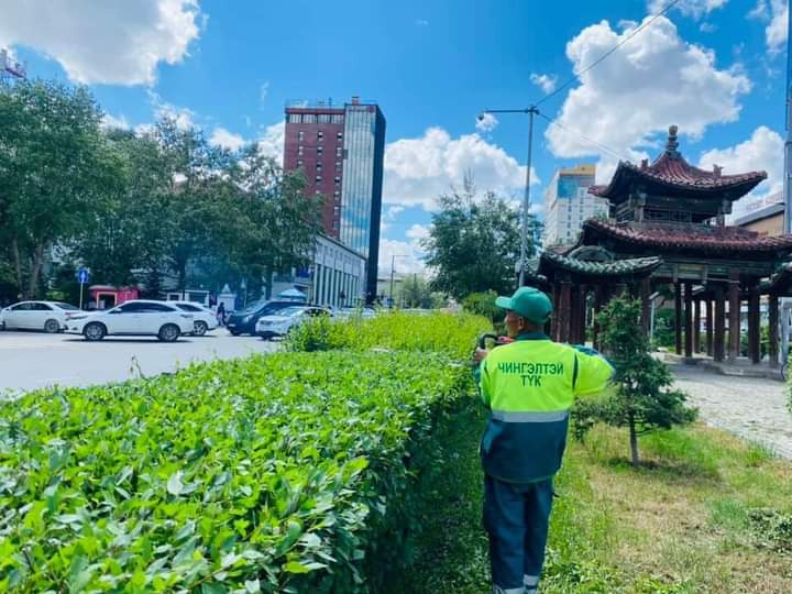 Улиас модны унгиралыг бууруулахаар модыг хэлбэржүүлэх, молцог баг цэцэг хяргах, хөвөн гарсан моддыг усаар шүршиж байна.