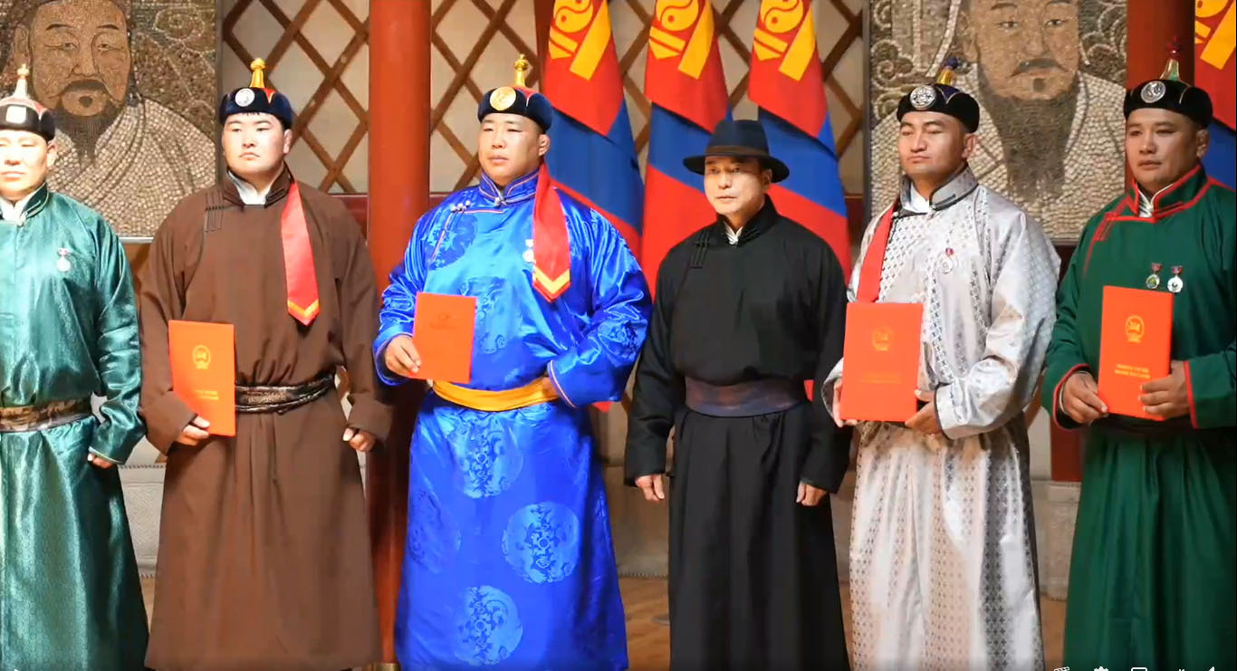 Монгол Улсын Ерөнхийлөгчийн зарлигаар өнгөрсөн жилийн наадмаар М.Бадарчид өвдөг шороодсон бөхчүүдэд улсын цол, чимгийг нөхөн олголоо.