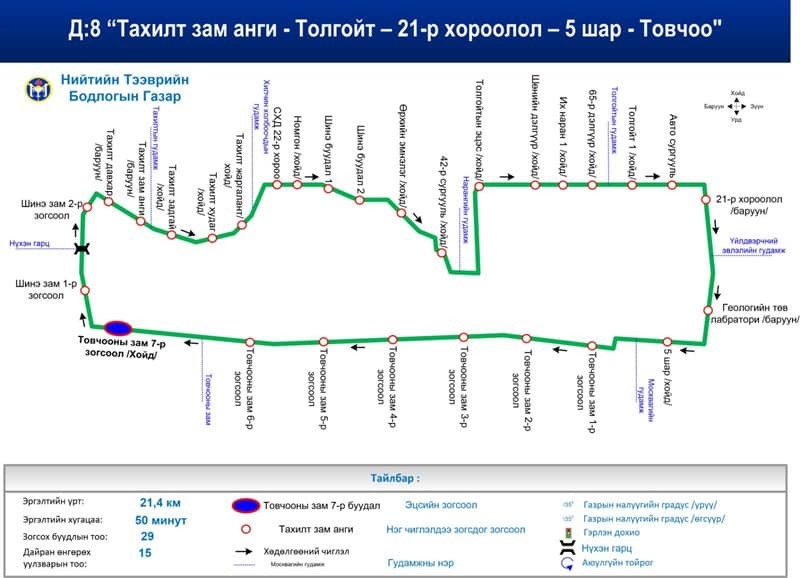 Сонгинохайрхан, Баянзүрх , Чингэлтэй дүүргийн нутаг дэвсгэрийн гэр хорооллын дундуур шинээр тавигдсан замаар дараах маршрутын дагуу өнөөдөр буюу 6-р сарын 24-ний өдрөөс дараах долоон чиглэлд үйлчилгээ үзүүлж байна.