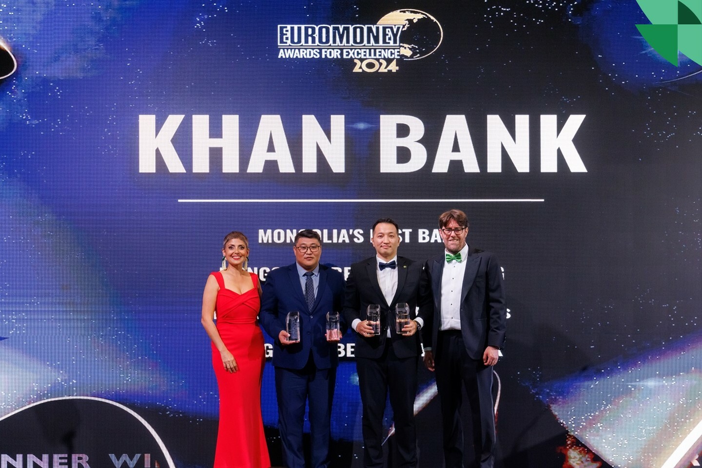 33 дахь удаагаа зохион байгуулагдаж буй “Euromoney Awards for Excellence” шагнал гардуулах ёслол өнгөрөгч пүрэв гарагт тохиож, ХААН Банкийг 2024 оны Монгол Улсын “Шилдэг банк” “Цахим шийдлээр тэргүүлэгч шилдэг банк”, “ЖДБ-ийг дэмжигч шилдэг банк”, “БОНЗ-ыг хэрэгжүүлэгч шилдэг банк”-аар тус тус нэрлэлээ. Шагналыг ХААН Банкны Стратеги хариуцсан дэд захирал Ю.Төрмөнх болон ХААН Банкны Жижиг дунд бизнесийн банк хариуцсан дэд захирал Ж.Товуудорж нар гардан авсан юм.