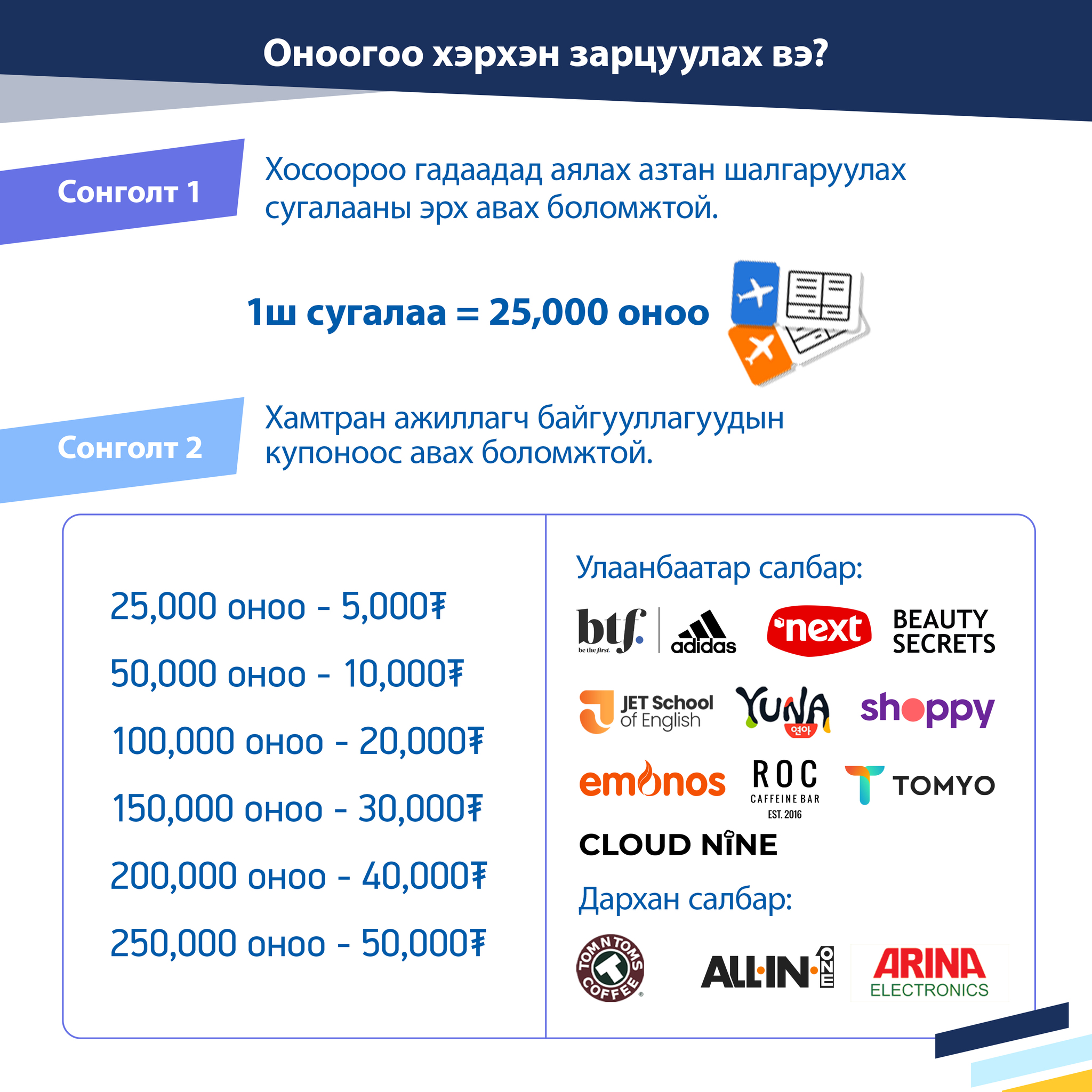 Таны хүлээн авсан орлогын 50₮ тутамд 1 оноо бодогдоно.