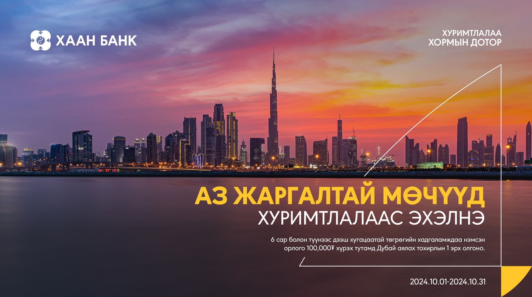 ХААН Банк харилцагчдадаа зориулан үзэсгэлэнт Дубай хотыг ердөө 100,000 төгрөгөөр үзэх боломжтой хадгаламжийн урамшуулалт аян зарлалаа.