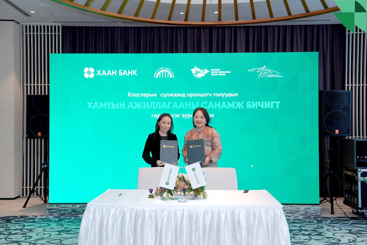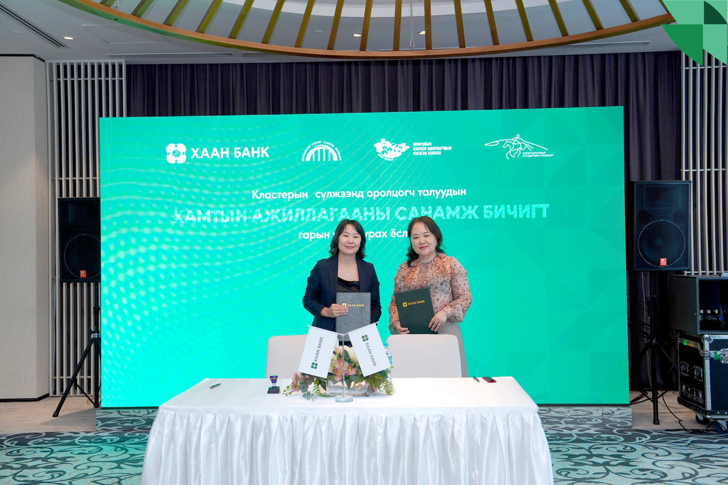 ХААН Банк малчид, хоршоод болон малын гаралтай бүтээгдэхүүн үйлдвэрлэгчдийг дэмжиж, кластерийн хөгжлийг шинэ шатанд гаргах зорилгоор Монголын бэлчээр ашиглагчдын нэгдсэн холбоо болон Монголын экспортын кластерийн сүлжээ ГҮТББ-тай хамтран ажиллах санамж бичиг тус тус байгууллаа.