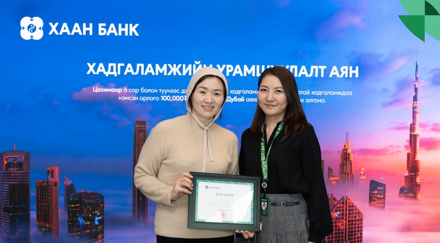 ХААН Банкнаас 2024 оны 12-р сарын 31-ний өдрийг хүртэл Хадгаламжийн урамшуулалт аяныг зарлаад буй билээ. Энэ хүрээнд 2024 оны 10-р сарын 1-31-ний өдрийг дуустал хугацаанд Khan Bank аппликэйшн болон Интернэт банкаар 6 сараас дээш хугацаатай төгрөгийн хадгаламж нээсэн болон хадгаламжийн дансандаа 100,000 төгрөг болон түүнээс дээш дүнтэй орлого хийсэн нийт харилцагчдаас 1 харилцагчийг тодрууллаа.