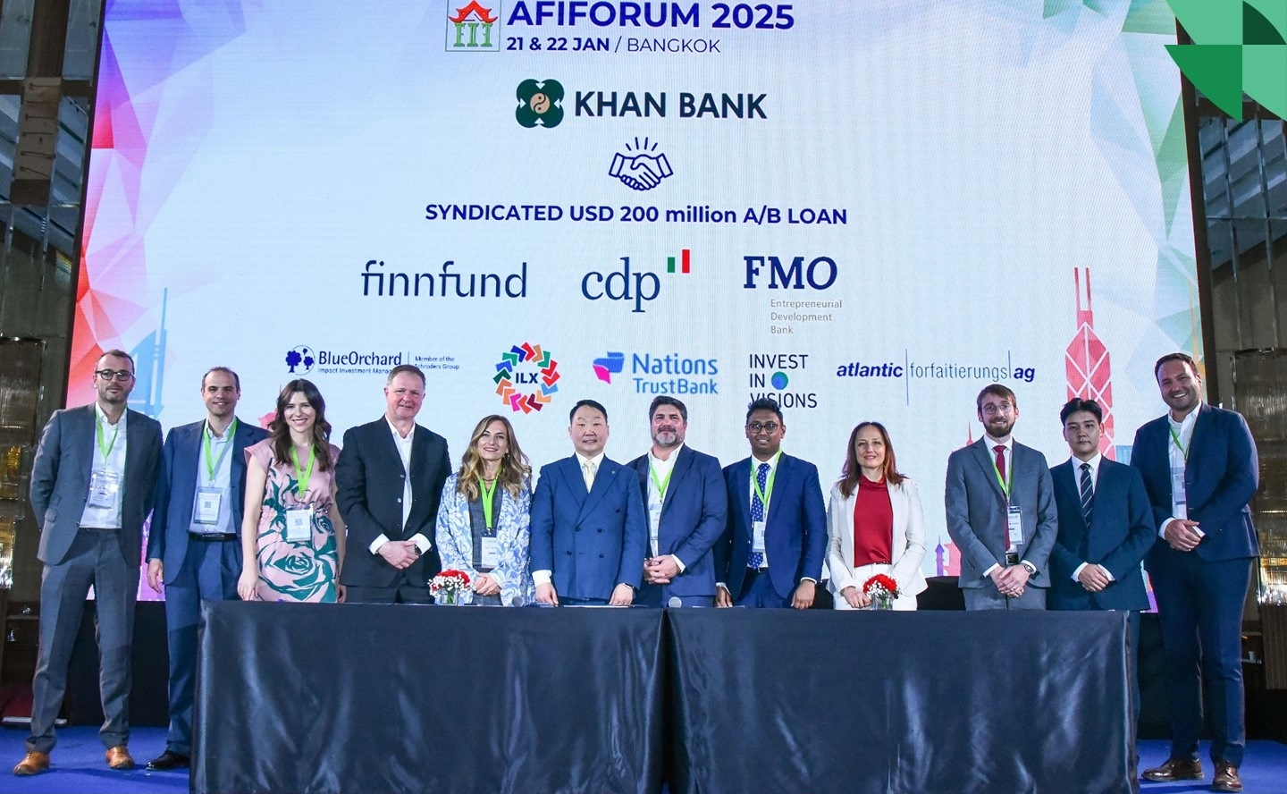 ХААН Банктай 2009 оноос хойш хамтран ажиллаж буй урт хугацааны түнш болох Нидерландын хөгжлийн банк (FMO) уг хамтарсан санхүүжилтийг удирдан зохион байгуулсан бөгөөд Италийн хөгжлийн санхүүгийн байгууллага (CDP), Финландын хөгжлийн санхүүгийн байгууллага (Finnfund), BlueOrchard, ILX, Nations Trust Bank, Invest in Visions, Atlantic Forfaiting зэрэг дэлхийд нэр хүндтэй томоохон хөгжлийн банк, санхүүгийн байгууллага, хөрөнгө оруулалтын сангуудтай хамтран нийт 200 сая ам.долларыг 5 хүртэлх жилийн хугацаатай, хосолсон валютаар, синдикат зээл хэлбэрээр ХААН Банканд олгох юм. Уг хамтарсан санхүүжилтийн 40 сая ам.долларыг FMO нь Монгол Улсын үндэсний валют болох төгрөгөөр олгож буйгаараа онцлог юм. Энэхүү үйл явдал нь ХААН Банкны түүхэнд нэгэн шинэ хуудас нээж, хамгийн олон санхүүжүүлэгч байгууллагуудтай хамгийн өндөр дүнгээр байгуулсан хамтарсан санхүүжилтийн хэлэлцээр болж буй бол олон улсын хөрөнгө оруулагч, санхүүжүүлэгч байгууллагаас Монгол Улсын банкны салбарт хосолсон валютаар олгож буй анхны хамтарсан санхүүжилт болж байна.