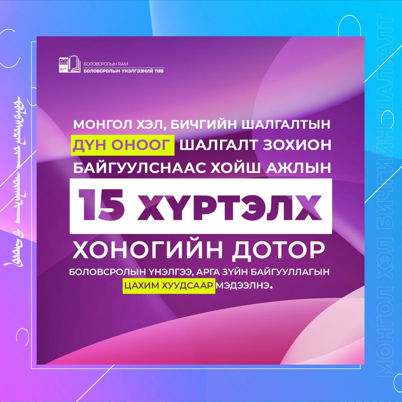 Шалгалтын цаг: 10.00-11.40 Хамрагдах анги: 11 дүгээр анги