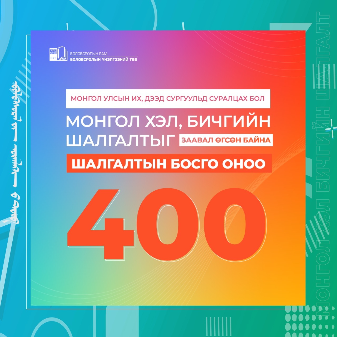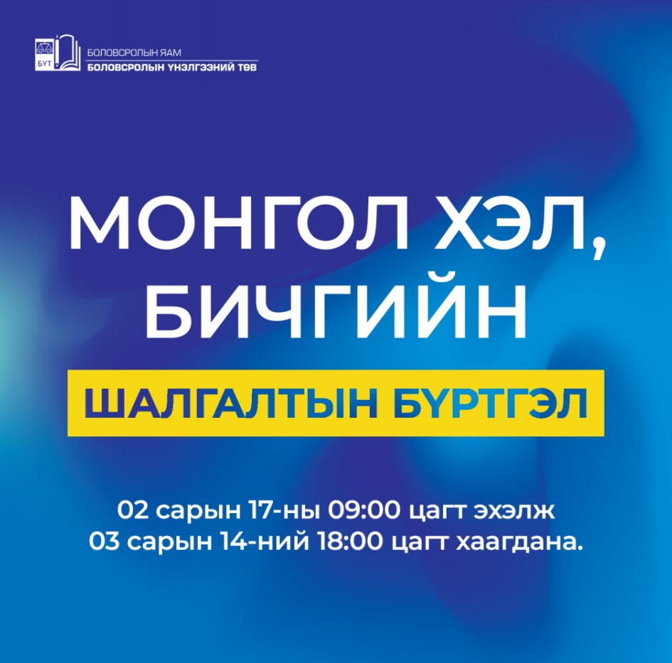 Элсэлтийн шалгалт болон Монгол хэл, бичгийн шалгалтын бүртгэл орон даяар эхэлсэн, МХБШ-ын бүртгэл ирэх гуравдугаар сарын 14-ний өдрийн 18:00 цаг хүртэл үргэлжилнэ.