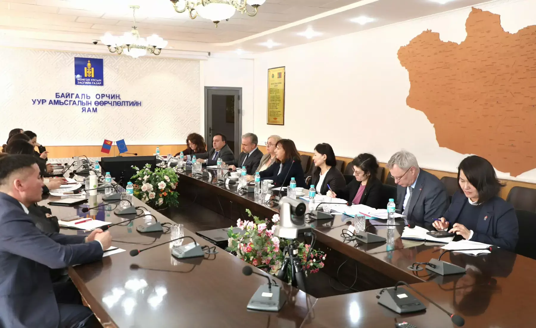 Байгаль орчин, уур амьсгалын өөрчлөлтийн сайд С.Одонтуяа Европын Холбооны Ази-Номхон Далайн бүсийн дэд захирал Паола Пампалони, Европын Холбооноос Монгол Улсад суух Онц бөгөөд Бүрэн эрхт Элчин сайд Ина Марчюлёните, холбогдох төлөөлөгчдийг хүлээн авч уулзлаа. Уулзалтад хоёр талын өндөр түвшний төлөөллүүд оролцож, байгаль орчны салбар дахь хамтын ажиллагааны өнөөгийн байдал, ирээдүйн чиг хандлагын талаар хэлэлцэв
