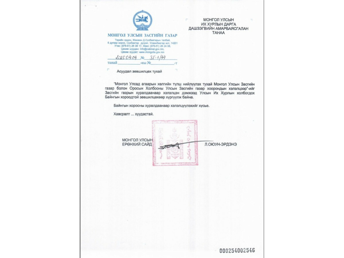 -ОРОСЫН КОМПАНИ БҮХ ТОНОГ, ТӨХӨӨРӨМЖ АЖИЛЛАХ ХҮЧЭЭ ОРОСООС ОРУУЛЖ ИРНЭ. МОНГОЛД ТАТВАРЫН ХӨНГӨЛӨЛТ ЭДЭЛЖ, ТӨЛБӨРӨӨ ЦАГ ТУХАЙД НЬ АВНА. АСУУДАЛ ГАРВАЛ ОРОСЫН ШҮҮХЭЭР ШИЙДҮҮЛНЭ ГЭЖ ХЭЛЭЛЦЭЭРТ ТУСГАЖЭЭ -