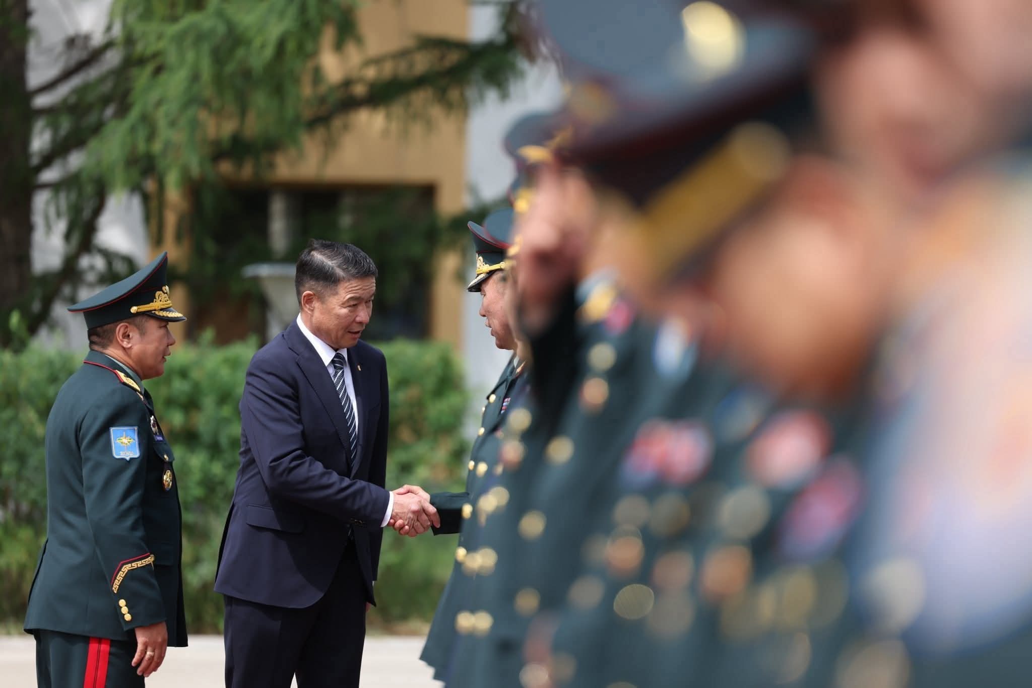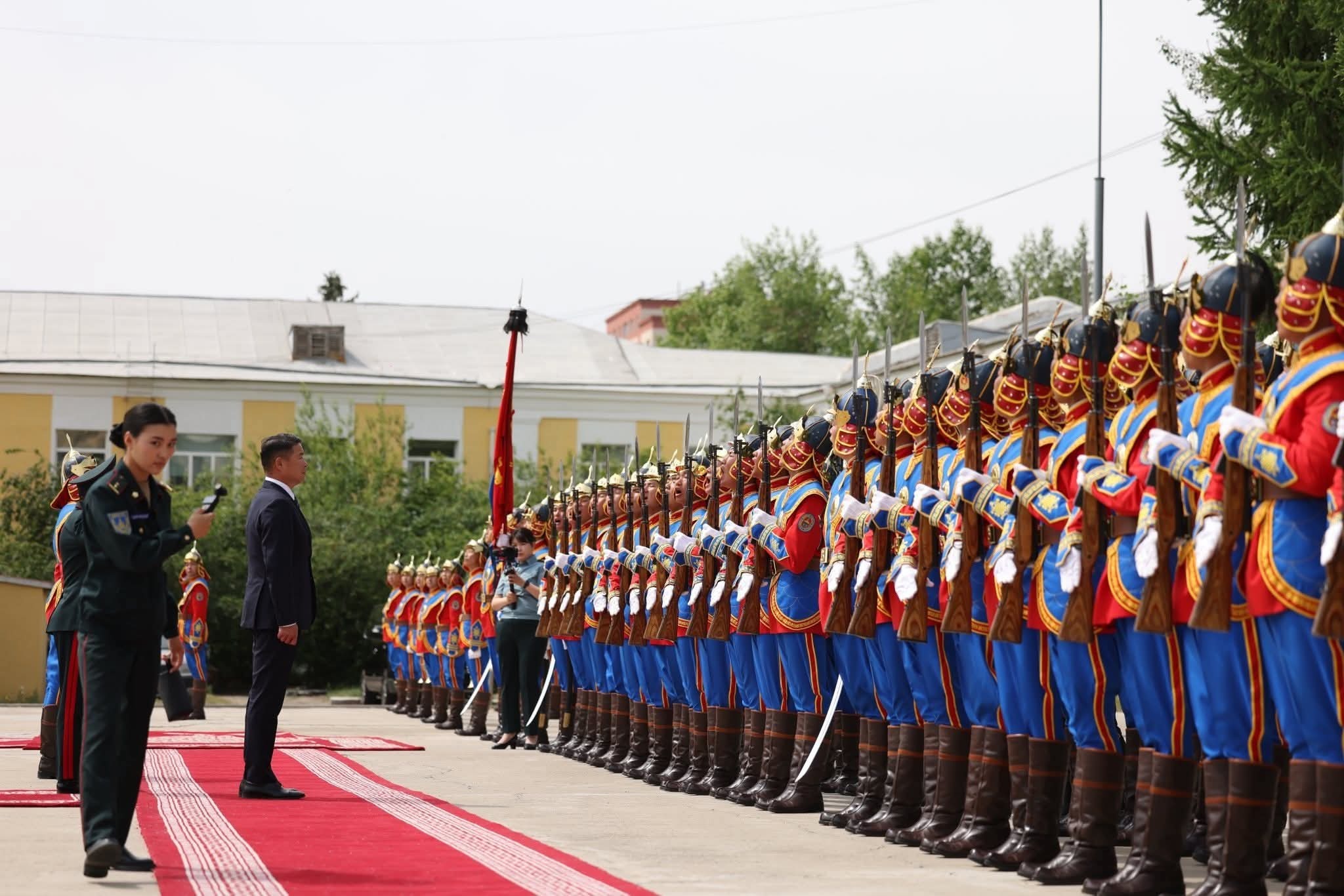 Батлан хамгаалахын сайдыг “Монгол Улсын цэргийн нийтлэг дүрэм”-ийн дагуу Хүндэт харуул жагсаж, ЗХЖШ-ын дарга, удирдлага, бүтцийн нэгжийн дарга нар угтаж авлаа.