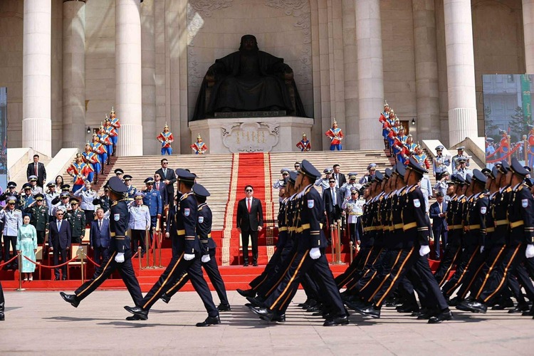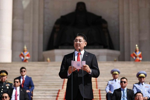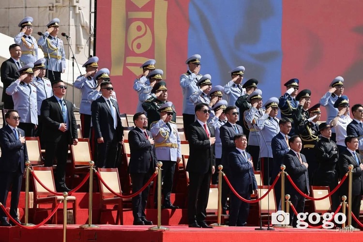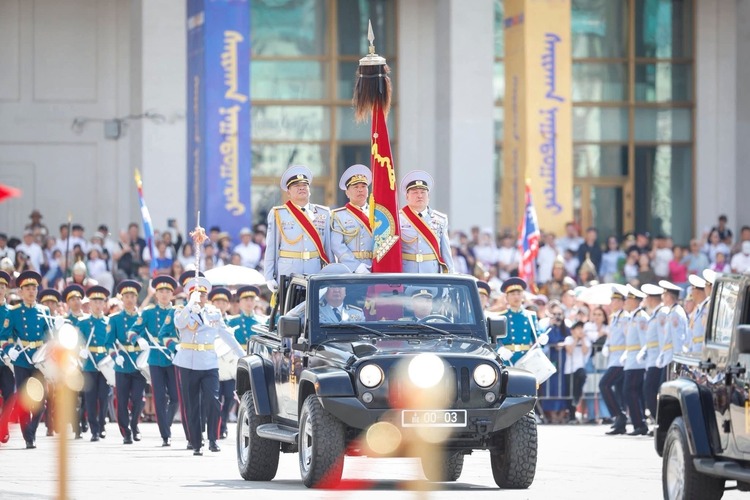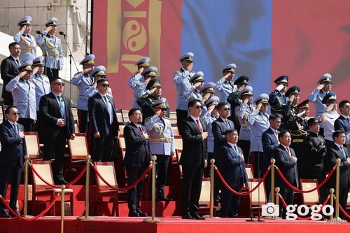 Мөн ёслолын жагсаалд оролцож буй төрийн цэргийн болон хууль сахиулах байгууллагын алба хаагчдад амжилт хүсэж, ард түмэн, үе үеийн эх орончид, ахмад дайчид, энхийг сахиулагч нарт талархал илэрхийллээ.
